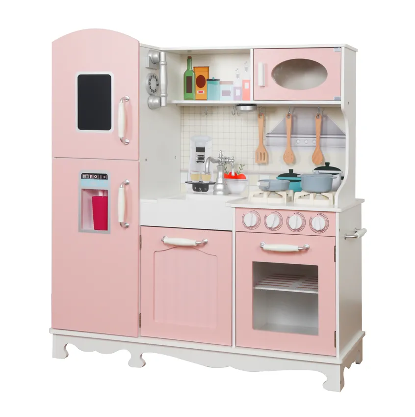 Bucătărie din lemn cu accesorii și funcții, 91 x 29,7 x 102,5 cm, roz, W10C409I