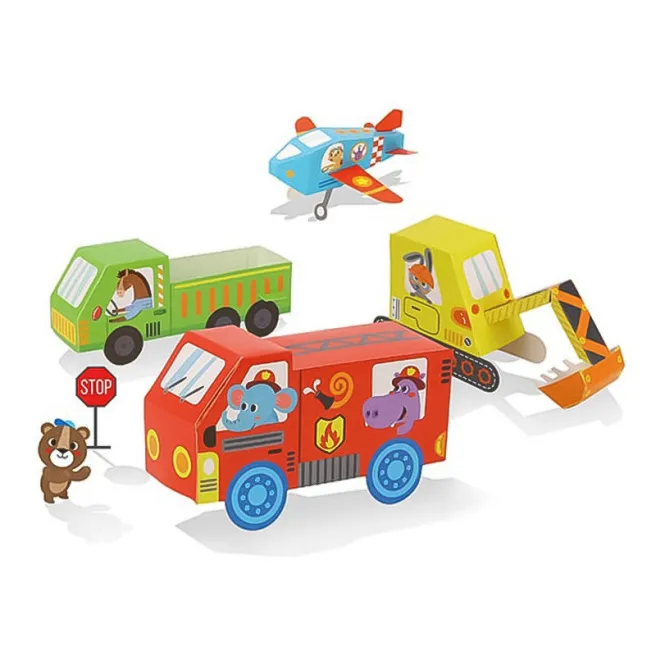 Copiii vor învăța cum să facă un camion de pompieri, un camion, un excavator și multe altele! Fiecare proiect îi va învăța pe copii tehnici noi de origami și le va oferi un sentiment de împlinire atunci când își termină proiectul.