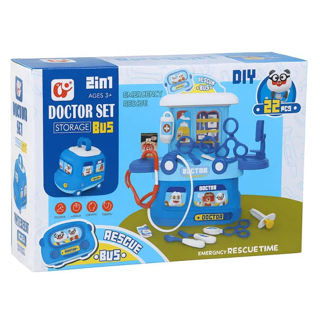 Setul de joacă „Ambulanța” este un set captivant și funcțional pentru micii doctori, care combină două forme de joacă: masa medicală și valiza portabilă. Setul are forma unui autobuz în miniatură, se transformă ușor și se transportă comod datorită mânerului. Setul include toate accesoriile necesare pentru jocul de rol — stetoscop, seringă, termometru, ochelari, foarfece și alte instrumente.