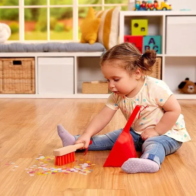 5 obiecte de jucărie pentru curățenie: cu ajutorul măturii, mopului, periei, colectorului de praf și lopățicii de jucărie, copilul tău te va putea ajuta în gospodărie.