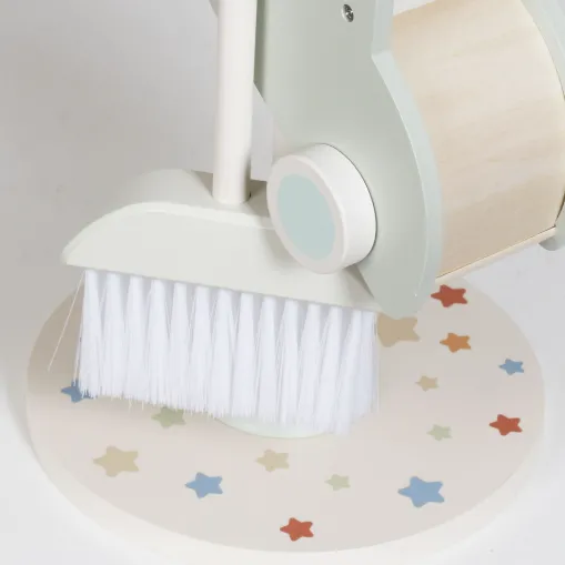 Setul include mături mici, lopățică, găleată și alte accesorii cu care copiii pot „face curățenie” după jucării sau pot inventa propriile scenarii de joc. Această joacă dezvoltă motricitatea fină, imaginația și abilitățile de independență.