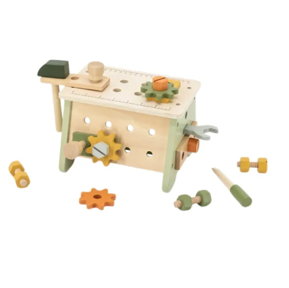 Acest banc de lucru pentru copii ajută la învățarea denumirilor uneltelor și utilizării lor, dezvoltând totodată motricitatea fină, coordonarea ochiilor și mâiniilor, gândirea și imaginația. Bancul este potrivit pentru educația bazată pe metoda Reggio și este recomandat pentru jocurile de dezvoltare în grădinițe și centre educaționale.