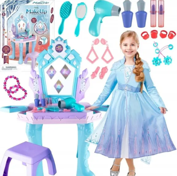 Creează o lume de basm pentru copilul tău cu măsuța de toaletă cu oglindă și accesorii!