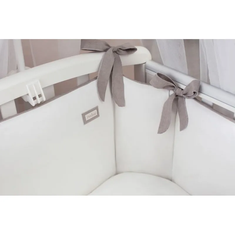 Peretele protector din acest set acoperă doar o parte din perimetru, datorită acestui fapt este mai universal în utilizare și potrivit pentru pătuțuri de diferite dimensiuni. Colțurile sunt rotungite pentru un plus de siguranță, iar benzile care fixează peretele protector de pătuc pot suporta o tensiune chiar puternică, oricît de tare nu ar trage copilul de el, iar pentru a-și păstra bine forma ,s-a folosit umplutura Hollcon (Holklon). Husele peretelui de protecție sunt detașabile, deci le puteți spăla cu ușurință doar partea exterioară fără a afecta umplutura interioară.