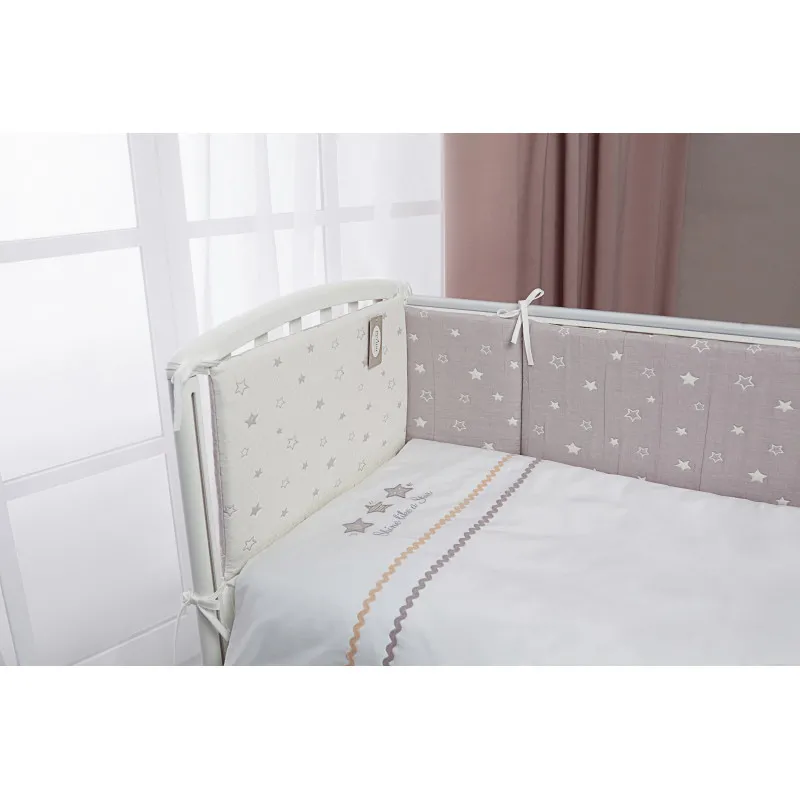 Setul elegant Perina Toys Stele este potrivit pentru orice tip de interior, are nuanțe naturale și culori pastelate care oferă confort și rafinețe. Texturile diferite ale lenjeriei de pat și ale laturilor formează o combinație interesantă ce oferă libertate imaginației.