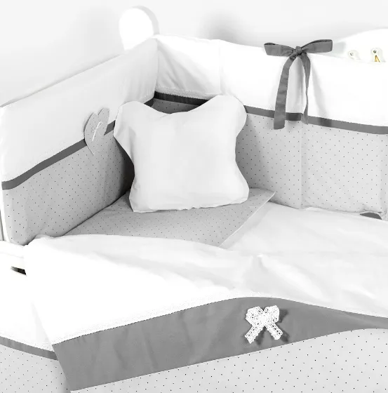 Lenjerie de pătuț 8 piese PernaMea Renaissance Buline Gri