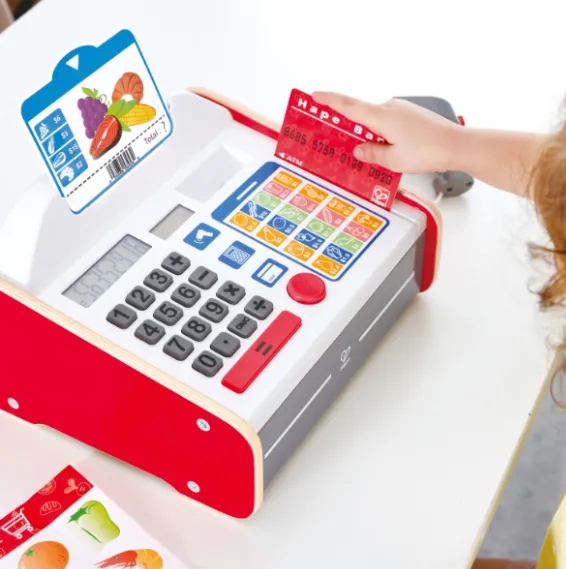 Învățați cum să gestionați banii cu acest fantastic registru de casă! Alegeți produsele, apoi calculați prețul! Setul include un calculator solar, un scanner cu efecte de lumină și sunet, monede și bancnote pentru a le păstra în sertar.
