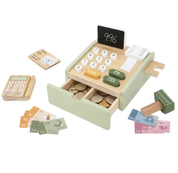Casă de marcat de la Viga Toys este cadoul ideal pentru micii iubitori de jocuri de rol. Cu această casă de marcat din lemn, copilul se poate bucura de o experiență captivantă, jucând rolul de casier sau vânzător într-un supermarket, magazin de haine sau florărie. Jocul dezvoltă imaginația și creativitatea, sprijină învățarea numerelor, utilizarea banilor și îmbogățește abilitățile sociale. Setul contribuie la dezvoltarea gândirii logice și a abilităților motorii fine, ajutând copilul să înțeleagă valoarea banilor și bazele matematicii.
