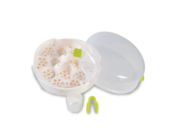 Sterilizatorul Fresh pentru microunde este o soluție practică și eficientă pentru igienizarea biberoanelor și accesoriilor. Compact, ușor și rapid, este ideal pentru utilizarea zilnică acasă sau în călătorii. Poate steriliza până la 5 biberoane simultan, fiind compatibil cu majoritatea cuptoarelor cu microunde.