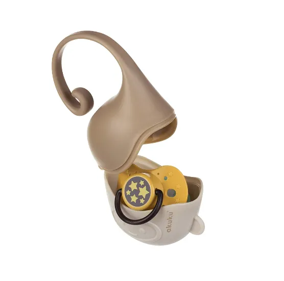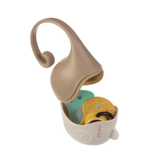 Un recipient practic pentru depozitarea suzetelor, oferind protecție eficientă împotriva murdăriei în timpul plimbărilor sau călătoriilor. Dimensiunea compactă permite transportul ușor într-o geantă, rucsac sau buzunar. Un mâner special în formă de coadă de maimuță permite atașarea comodă la cărucior, pătuț sau scaun auto. Poate conține 2 suzete. Culorile neutre se potrivesc cu orice stil.