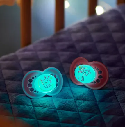 Suzeta strălucitoare în întuneric - ușor de găsit deoarece butonul strălucește