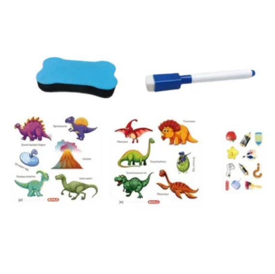 Include litere magnetice, carduri cu dinozauri și marker cu burete