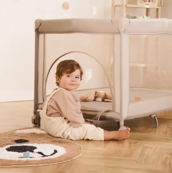 Fermoar lateral permite acces independent și transformă pătuțul într-un spațiu de joacă