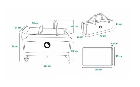 Datorita celor 2 roti, patutul este foarte usor de mutat. Cadrul ușor de utilizat permite plierea mobilierului la o dimensiune compactă, iar geanta de transport la îndemână este excelentă atât pentru depozitarea, cât și pentru transportul produsului. Patutul include si o plasa de tantari care protejeaza bebelusul de insecte.