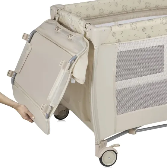 Organizator util. Organizatorul robust cu trei compartimente, atașat pe lateralul pătuțului, ajută la menținerea lucrurilor esențiale bine organizate și ușor accesibile, astfel încât cele mai importante obiecte să fie mereu la îndemână. Pătuțul dispune și de buzunare suplimentare practice, ideale pentru depozitarea jucăriilor.