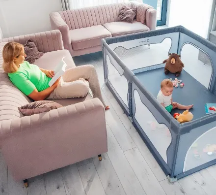 Tarc-ul dispune de două deschideri laterale cu fermoar, facilitând accesul copilului și permițându-i să intre și să iasă independent. Astfel, părinții nu trebuie să ridice copilul peste margini de fiecare dată, reducând efortul fizic. Materialele ușor de curățat mențin igiena spațiului de joacă. Datorită funcției de pliere rapidă și dimensiunilor compacte atunci când este pliat, tarc-ul poate fi ușor transportat și depozitat, inclusiv într-o geantă de transport inclusă, fiind perfect pentru călătorii sau organizarea spațiului de acasă.