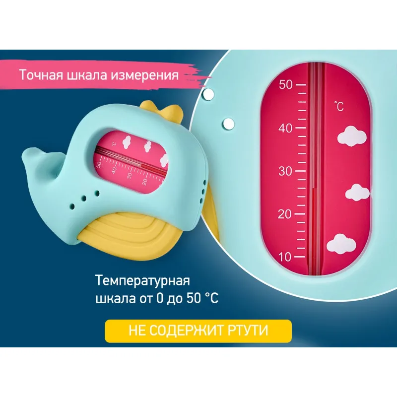 Termometru pentru apa Roxy Kids „Whale”, Albastru+galben (RWT-007-BY)
