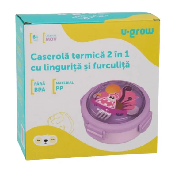 Setul include o linguriță și o furculiță, oferind un plus de comoditate. Caserola este concepută pentru a preveni scurgerile de lichide sau mâncare, asigurând că alimentele rămân bine închise și protejate, indiferent de modul de transport.