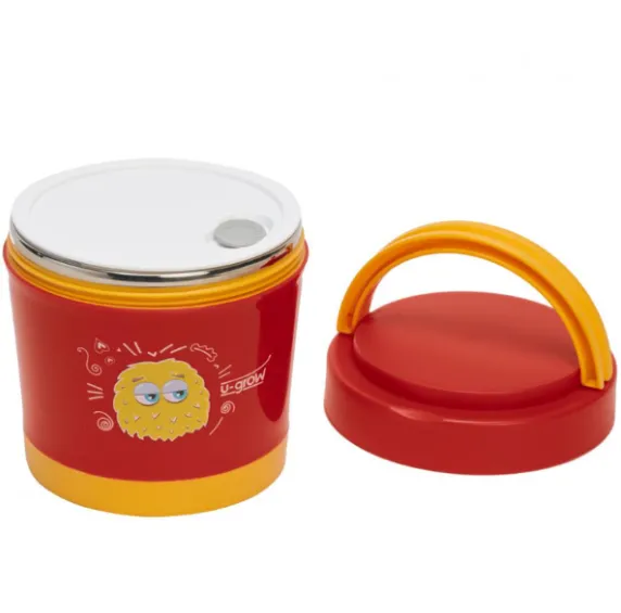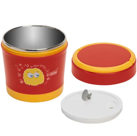 Material termorezistent: Suprafața exterioară a containerului este realizată din polipropilenă alimentară, care protejează împotriva arsurilor la mâncare fierbinte. Partea interioară este din oțel inoxidabil lustruit, asigurând durabilitate și menținerea temperaturii alimentelor.