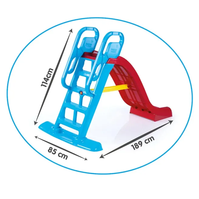 Copiii se urcă cu ușurință pe tobogan de-a lungul scării de plastic și apoi se rostogolesc în jos cu zâmbete înfățișate. Toboganul este ușor de transportat, așa că îl poți duce în casă ta sau în satul bunicii tale.