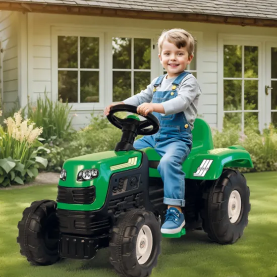 Tractorul cu pedale Ranchero este o jucărie practică și rezistentă, ideală pentru copiii care iubesc activitățile în aer liber și jocurile de rol. Designul inspirat de utilajele reale și culoarea verde îl fac atractiv și ușor de remarcat.