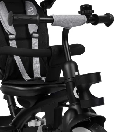 Mânerul ajustabil, care poate fi reglat între 82 și 100 cm, se adaptează la înălțimea îngrijitorului, asigurând o utilizare confortabilă. Sistemul de direcție din mâner permite părinților să controleze complet direcția tricicletei, în timp ce frânele separate pe roțile din spate permit blocarea vehiculului atunci când este staționar.