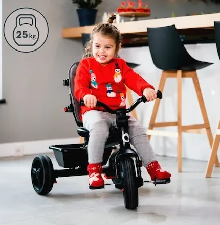 Gama largă de reglare a bicicletei permite rotirea scaunului, astfel încât copilul să se poată deplasa în sensul de mers sau în contra.