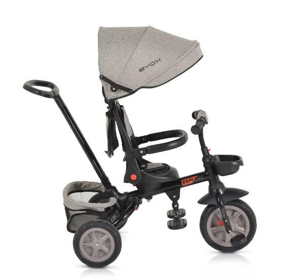 Tricicleta Explore oferă o experiență de mers sigură, confortabilă și plăcută pentru micuțul tău, cu un plus de comoditate pentru părinți.