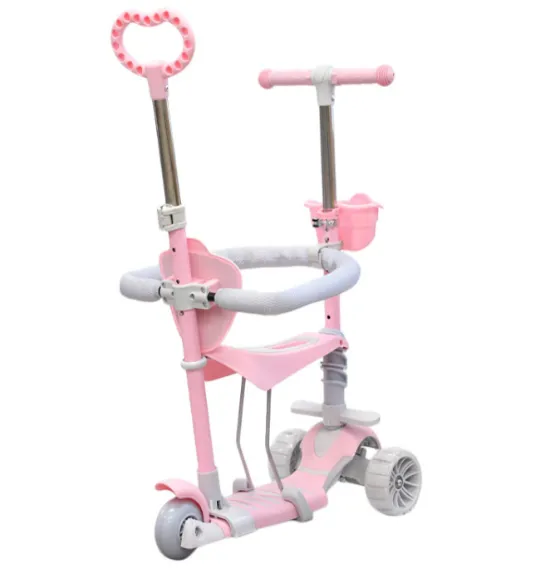 Trotinetă pentru copii 5 în1 (protecție,suport), roz, cod 147602