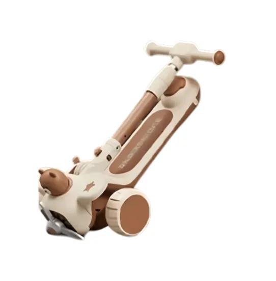 • Trotinetă pentru copii 6 în 1 cu scaun, mâner parental, roți luminoase și muzică, bej, RTM Scooter (91573)