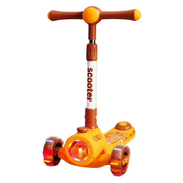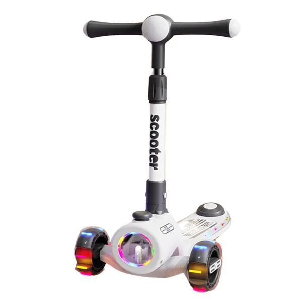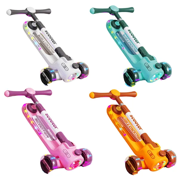 Trotinetă pliabilă cu trei roți, lumini LED și muzică destinată copiilor mici.