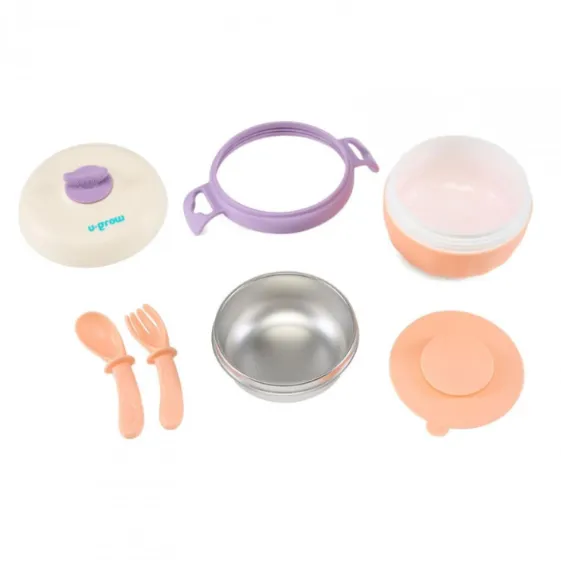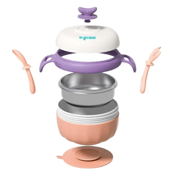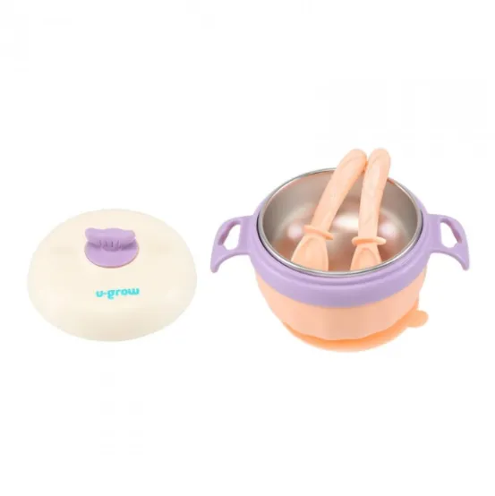 Bol termic U-Grow cu linguriță și furculiță, mov