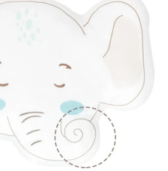 Pernă jucăușă din pluș, perfectă pentru pătuțul și decorarea camerei. Capac din material moale și umplutură pufoasă. Forma jucăușă de animal și culori blânde, care se potrivesc cu designul Kikkaboo de seturi de pat.