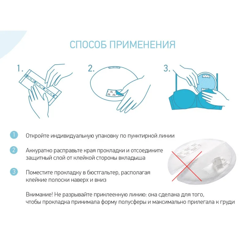 Tampoanele sunt prinse convenabil de sutien folosind un strat dublu adeziv, iar forma lor voluminoasă va asigura o potrivire perfectă pe piept.