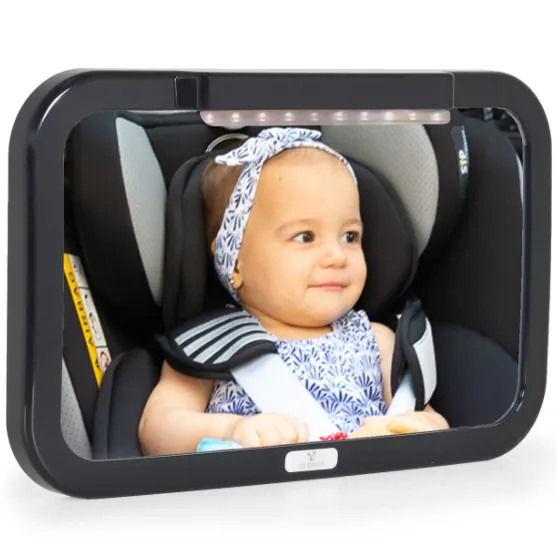Oglindă ușor de montat, care se prinde în câteva secunde pe spătarul scaunului din spate și se rotește și înclină pentru o vizibilitate mai bună cu lumină LED. Proiectată pentru a vă ajuta să vedeți copilul când este în scaunul auto, orientat în sens opus direcției de mers, fără a vă întoarce capul în timp ce conduceți.