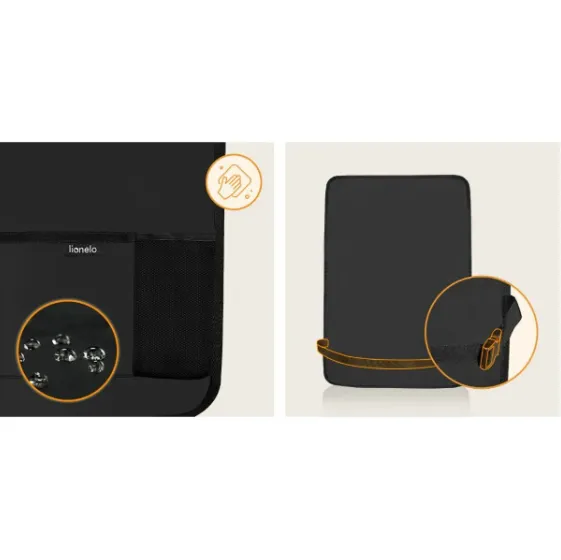 Lionelo SeatOrganizer este un organizator auto care se agață de spătarul scaunului din față. Îți menține copilul distrat în timpul călătoriilor, ajută la menținerea ordinii în mașină și protejează scaunul de murdărie, cum ar fi urmele de la pantofii copiilor. Organizatorul are 5 buzunare de dimensiuni diferite, permițând aranjarea ordonată a tuturor obiectelor esențiale. Unul dintre buzunare este special conceput pentru a ține o tabletă, astfel încât copilul să poată urmări desene animate. De asemenea, organizatorul oferă acces facil la gustări sau băuturi în timpul călătoriei.