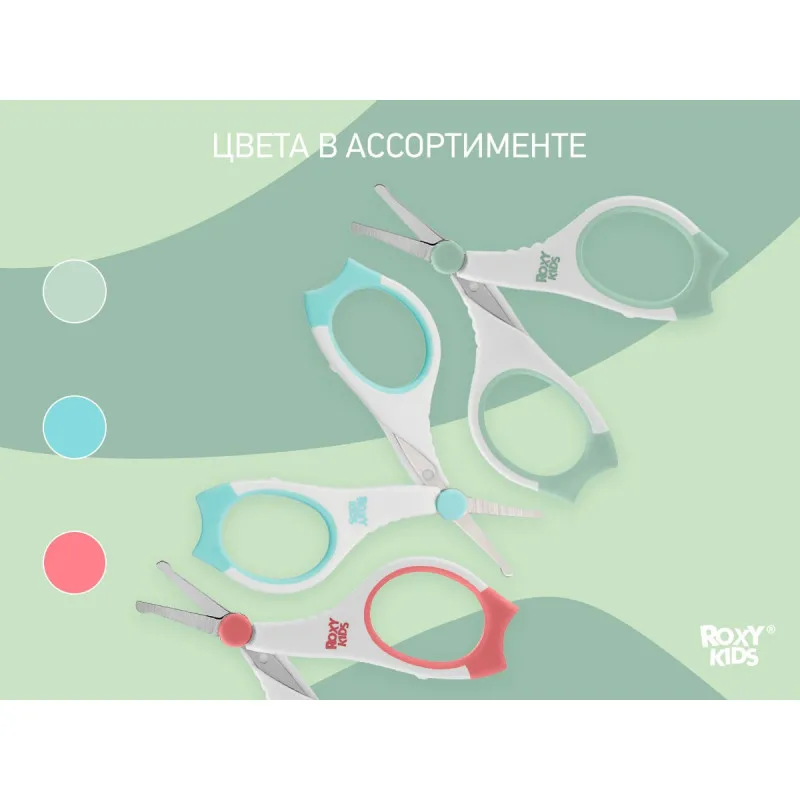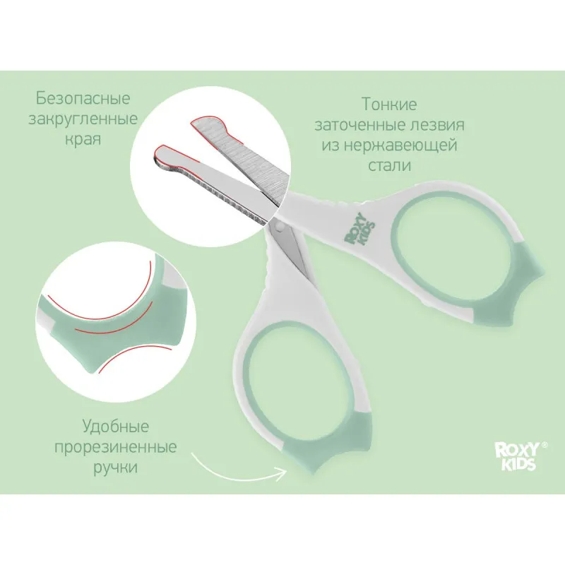 Foarfece de manichiura pentru nou-nascuti Roxy Kids, cu manere cauciucate, Mint (RPS-002-M)