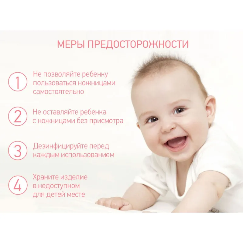 Foarfecele cu lame scurte, rotunjite, vă vor permite să tăiaț1i cu grijă, rapid și fără durere unghiile nou-născutului.