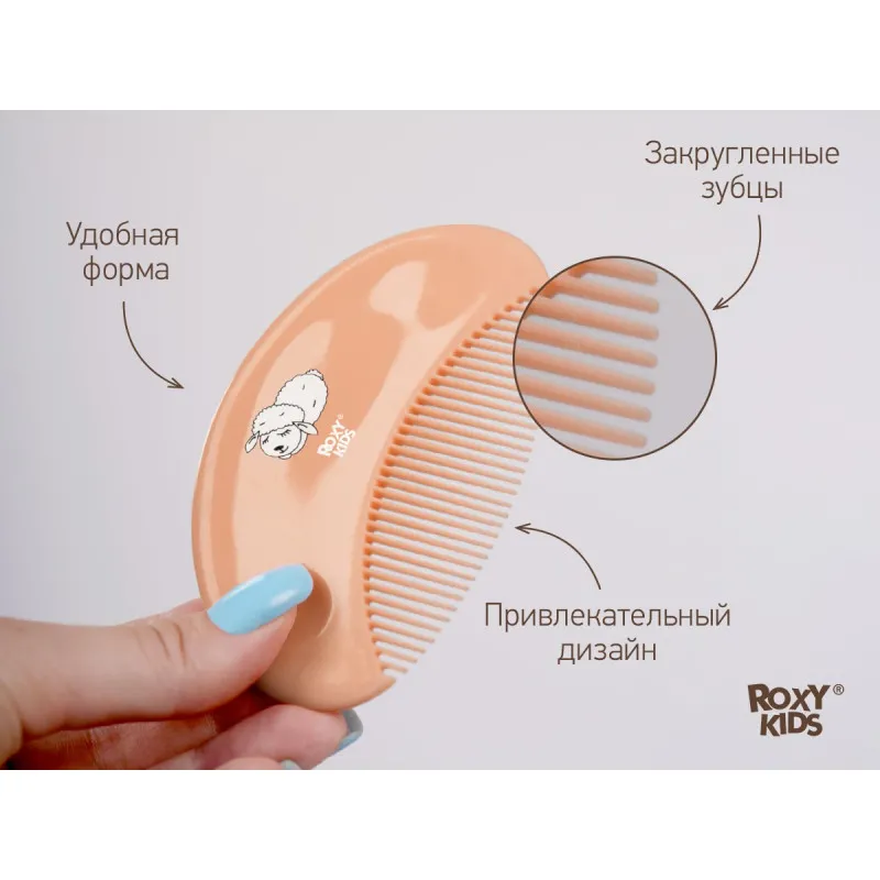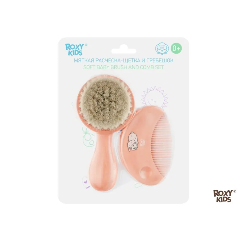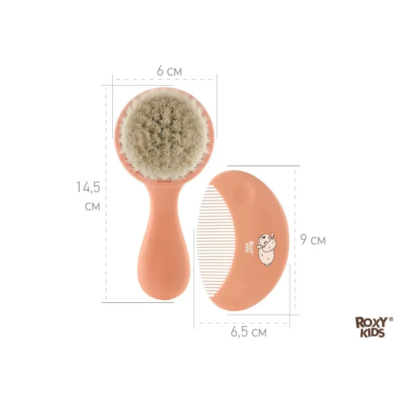 Peria-pieptene cu peri moi din lana naturala de oaie si un pieptene confortabil ROXY-KIDS sunt concepute pentru bebelusi si nou-nascuti.