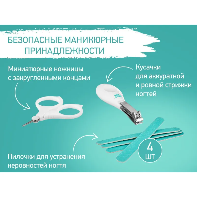 Foarfecele cu lame subțiri rotunjite, penseta și pila din oțel inoxidabil sunt sigure și făcute special pentru unghiile moi și mici ale nou-născuților.