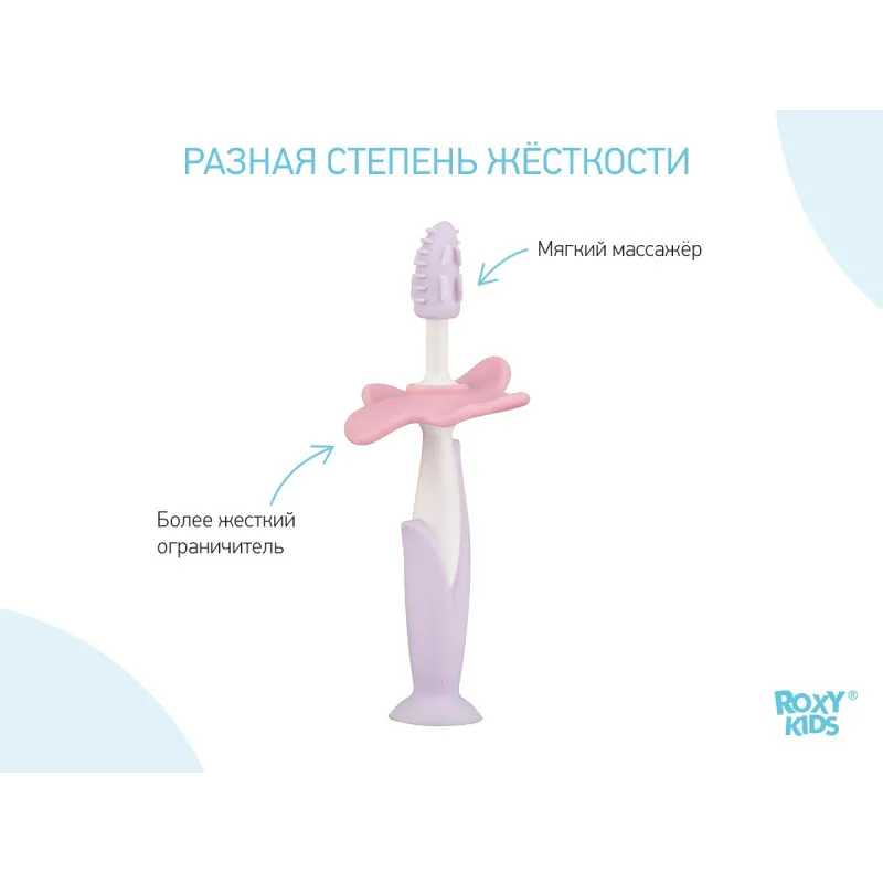 Setul de periuțe de dinți FLOWER de la ROXY-KIDS este conceput pentru îngrijirea bucală confortabilă și sigură pentru un copil din primele luni de viață.