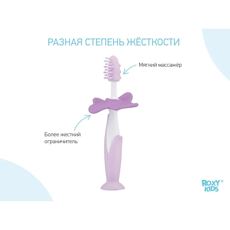 Setul de periuțe de dinți FLOWER de la ROXY-KIDS este conceput pentru îngrijirea bucală confortabilă și sigură pentru un copil din primele luni de viață.