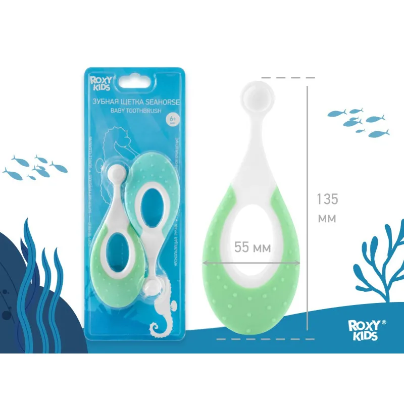 Periuțele de dinți SEAHORSE de la ROXY-KIDS cu peri ultra-moi sunt concepute pentru îngrijirea confortabilă și sigură a primilor dinți și a cavității bucale a bebelușului.