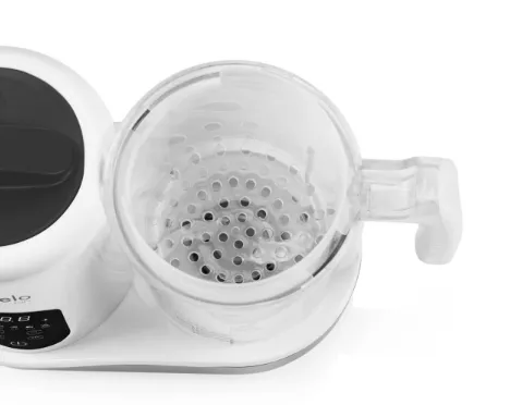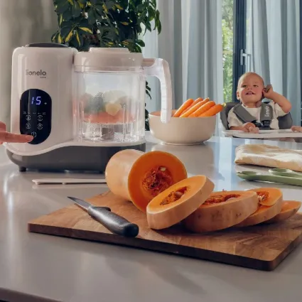 Lionelo BabyMenu este un aparat modern care ofera functii de gatire la abur, mixare, decongelare, incalzire si sterilizare, permitandu-ti sa pregatesti o masa sanatoasa intr-un timp scurt. Prioritatea noastra este sa sprijinim parintii in crearea unor obiceiuri alimentare sanatoase - datorita posibilitatilor oferite de BabyMenu, ingrijitorii pot crea cu usurinta si rapid o masa sanatoasa si variata, indiferent de conditii. Cu ajutorul acestuia, un parinte poate nu doar sa incalzeasca laptele sau un borcan, ci si sa gateasca la abur legume, fructe, peste sau carne, ba chiar sa opareasca alimentele. Astfel, extinderea dietei celui mic devine mult mai simpla, iar prepararea mesei se desfasoara in conditii igienice. Aparatul are un incalzitor integrat, care permite nu doar incalzirea rapida, ci si decongelarea laptelui sau a borcanului. Intre timp, functiile de gatire la abur si mixare fac mult mai usoara crearea meselor sanatoase de la zero. Tot ce trebuie sa faci este sa torni apa in rezervor, sa adaugi alimentele in cosul dedicat si apoi sa activezi functia de gatire la abur prin simpla apasare a unui buton. Scoate ingredientele finite cu clestele inclus si mixeaza-le datorita lamelor de la baza. Cupa, fabricata din tritan, nu este doar sigura, ci si durabila. In acelasi timp, posibilitatea de a seta manual sau automat timpii de mixare, gatire la abur sau incalzire iti permite sa ajustezi configuratia aparatului la nevoile tale. Prin combinarea a pana la cinci functii, un parinte poate compune rapid si usor o masa sanatoasa pentru copilul sau - ajustand marimea portiei si consistenta in functie de cerintele curente.