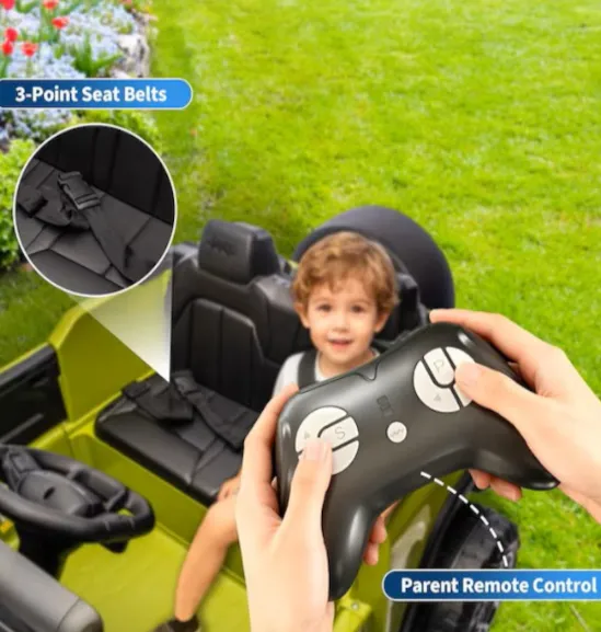 Mașina electrică este proiectată pentru o sarcină de până la 30 kg și dezvoltă o viteză de la 3 la 8 km/h. Siguranța și confortul tânărului șofer sunt asigurate de scaunul moale din piele cu centuri de siguranță, roțile EVA rezistente la uzură și telecomanda 2.4G. Realismul călătoriei este sporit de ușile care se deschid, farurile față și spate luminoase, iar sistemul multimedia încorporat cu suport Bluetooth, muzică și radio va face fiecare călătorie captivantă.