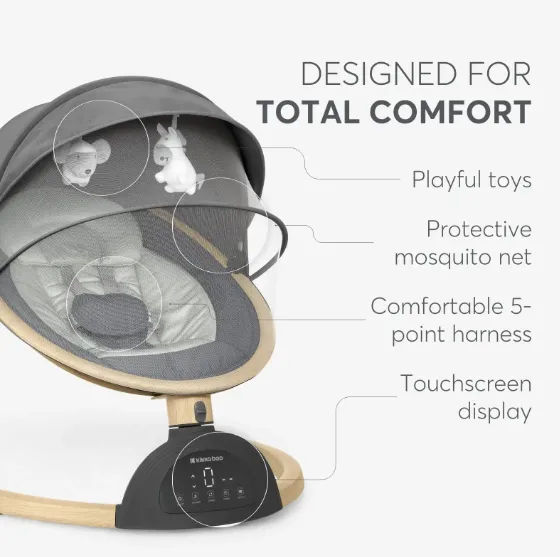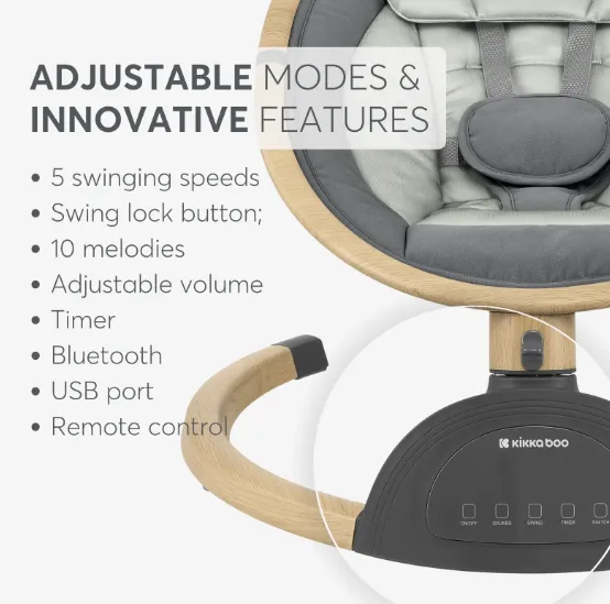 Leagănul electric ASHLEE poate fi folosit de la nou-născuți cu o greutate de până la 9 kg. Fabricat cu un cadru ușor din aluminiu și un înveliș elegant din lemn, acest produs combină stilul cu funcționalitatea, oferind un mediu liniștit și confortabil pentru bebelușul dumneavoastră.