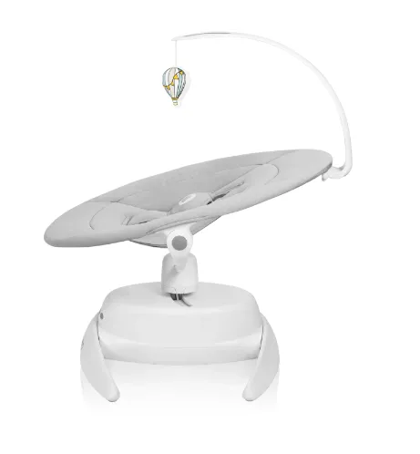 Scaun rotativ 360°: Caracteristica principală a balansoarului Iris este scaunul rotativ la 360°. Acest lucru permite părinților să ajusteze direcția de balansare fără efort și să mențină contactul vizual constant cu bebelușul, îmbunătățind legătura și supravegherea.