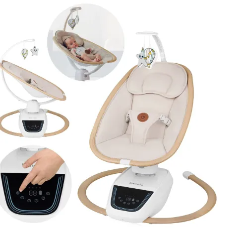 O selecție de melodii preîncărcate, sunete din natură și zgomot alb ajută la liniștirea copilului, oferind totodată varietate captivantă. Balansoarul are un temporizator încorporat, care permite oprirea automată a mișcării după o perioadă de timp selectată.