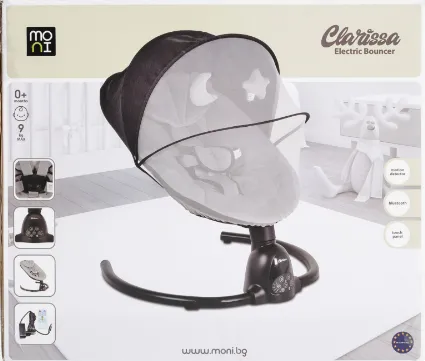 Leagănul electric Clarissa are un design elegant și curat, potrivit pentru orice interior. Are 5 viteze de legănare din care puteți alege. Leagănul are un senzor de mișcare încorporat, care poate activa automat legănarea atunci când copilul se mișcă. Cu ajutorul funcției Bluetooth, puteți reda muzică la alegere, în cazul în care nu doriți să utilizați cele 10 melodii disponibile. Leagănul funcționează doar cu un adaptor cu un cablu de 5m (inclus în set). Poate fi controlat fie prin panoul tactil al mecanismului, fie printr-o telecomandă. Opțional, puteți utiliza și temporizatorul cu opțiuni de 8, 15 și 30 de minute. Selectând una dintre aceste opțiuni, leagănul se oprește după intervalul specificat de timp. Centura de siguranță cu 5 puncte se va asigura de siguranța copilului. Produsul vine cu un parasolar cu plasă împotriva insectelor și 2 jucării de pluș. În set este inclusă și o pernă moale pentru confortul bebelușului. Tapiseria poate fi ușor îndepărtată pentru spălare. Leagănul poate fi demontat rapid și ușor de către un adult printr-o singură mișcare. În plus, construcția sa extrem de ușoară îl face convenabil pentru a fi transportat în altă cameră sau în călătorii.