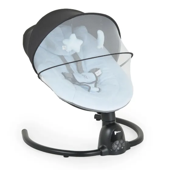 Leagănul electric Clarissa are un design elegant și curat, potrivit pentru orice interior. Are 5 viteze de legănare din care puteți alege. Leagănul are un senzor de mișcare încorporat, care poate activa automat legănarea atunci când copilul se mișcă. Cu ajutorul funcției Bluetooth, puteți reda muzică la alegere, în cazul în care nu doriți să utilizați cele 10 melodii disponibile. Leagănul funcționează doar cu un adaptor cu un cablu de 5m (inclus în set). Poate fi controlat fie prin panoul tactil al mecanismului, fie printr-o telecomandă. Opțional, puteți utiliza și temporizatorul cu opțiuni de 8, 15 și 30 de minute. Selectând una dintre aceste opțiuni, leagănul se oprește după intervalul specificat de timp. Centura de siguranță cu 5 puncte se va asigura de siguranța copilului. Produsul vine cu un parasolar cu plasă împotriva insectelor și 2 jucării de pluș. În set este inclusă și o pernă moale pentru confortul bebelușului. Tapiseria poate fi ușor îndepărtată pentru spălare. Leagănul poate fi demontat rapid și ușor de către un adult printr-o singură mișcare. În plus, construcția sa extrem de ușoară îl face convenabil pentru a fi transportat în altă cameră sau în călătorii.